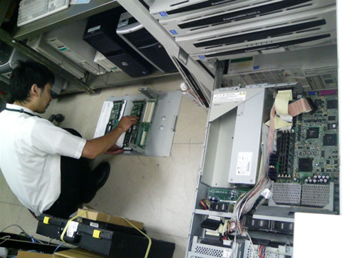 8時30分頃に連絡して、30分ほどで保守サービス先のNECフィールディングさんが到着。